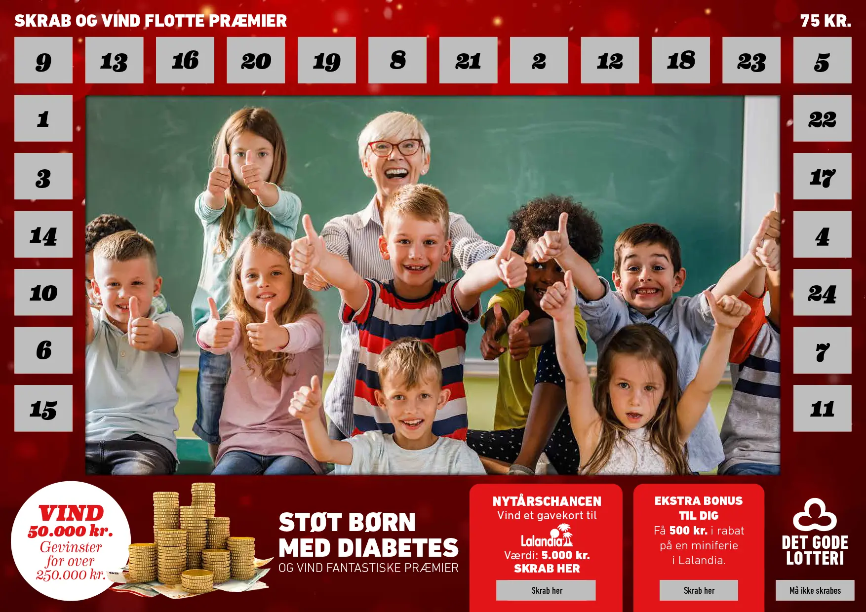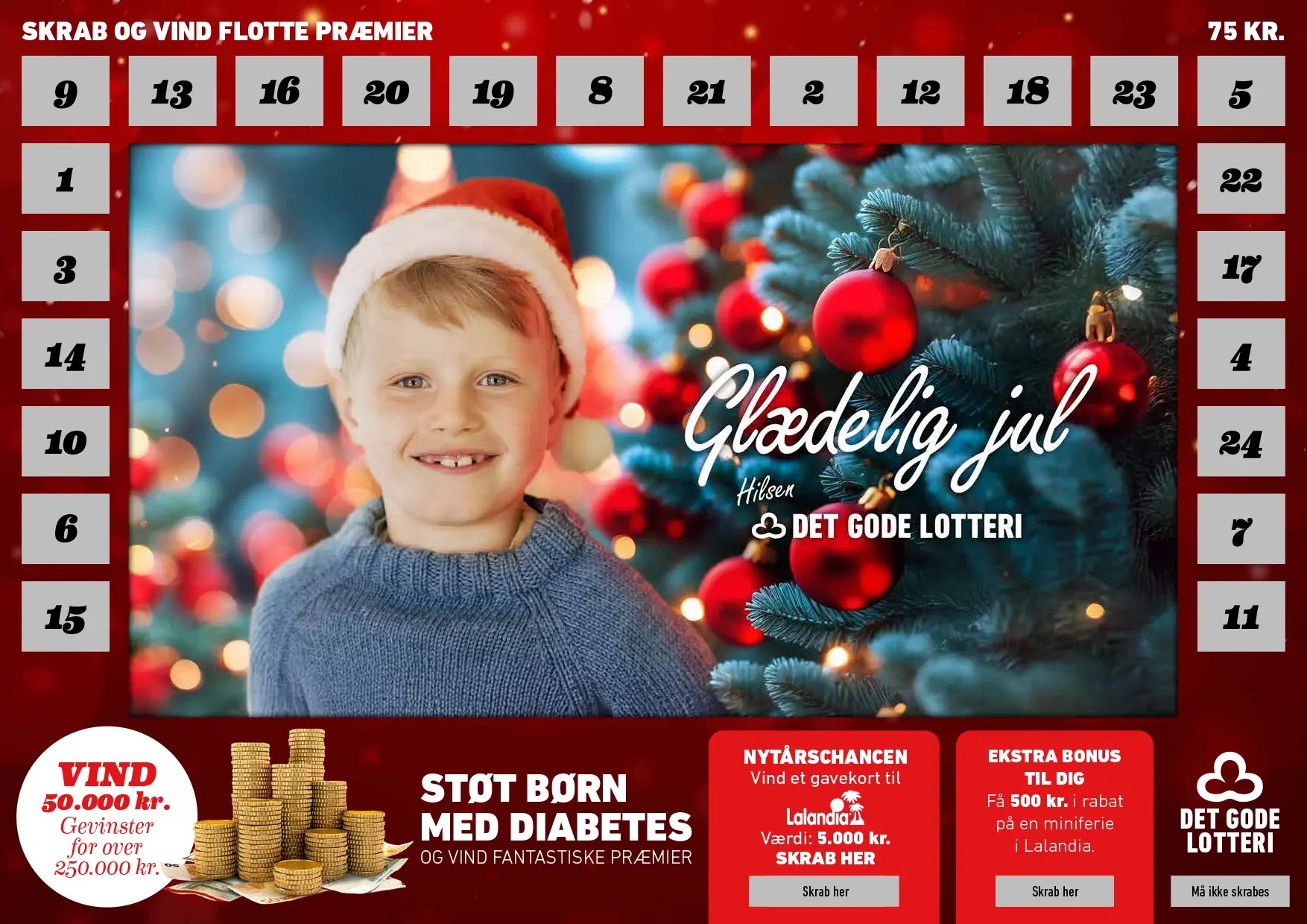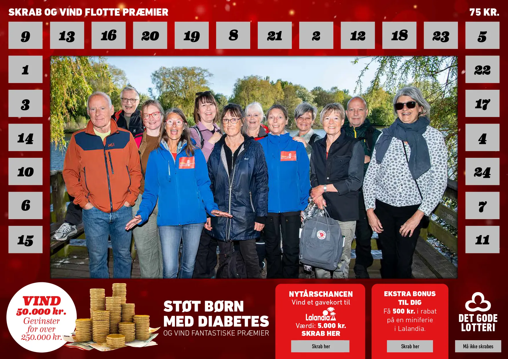Når du sælger julekalenderen, er du med til at gøre en forskel for alle med diabetes – og deres familier. Overskuddet fra salget går til Diabetesforeningens arbejde. Med denne støtte kan vi tilbyde børnefamiliekurser og gratis rådgivning, når bekymringerne trænger sig på – og fremme vigtig forskning i bedre behandling.